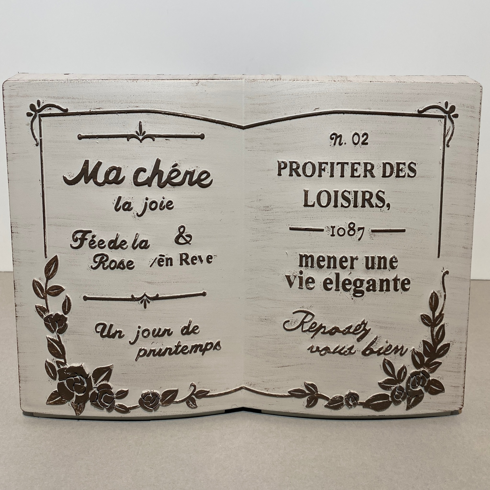 開いた本を立てた形状になっていて後ろ側に花を植える事ができるようになっています。