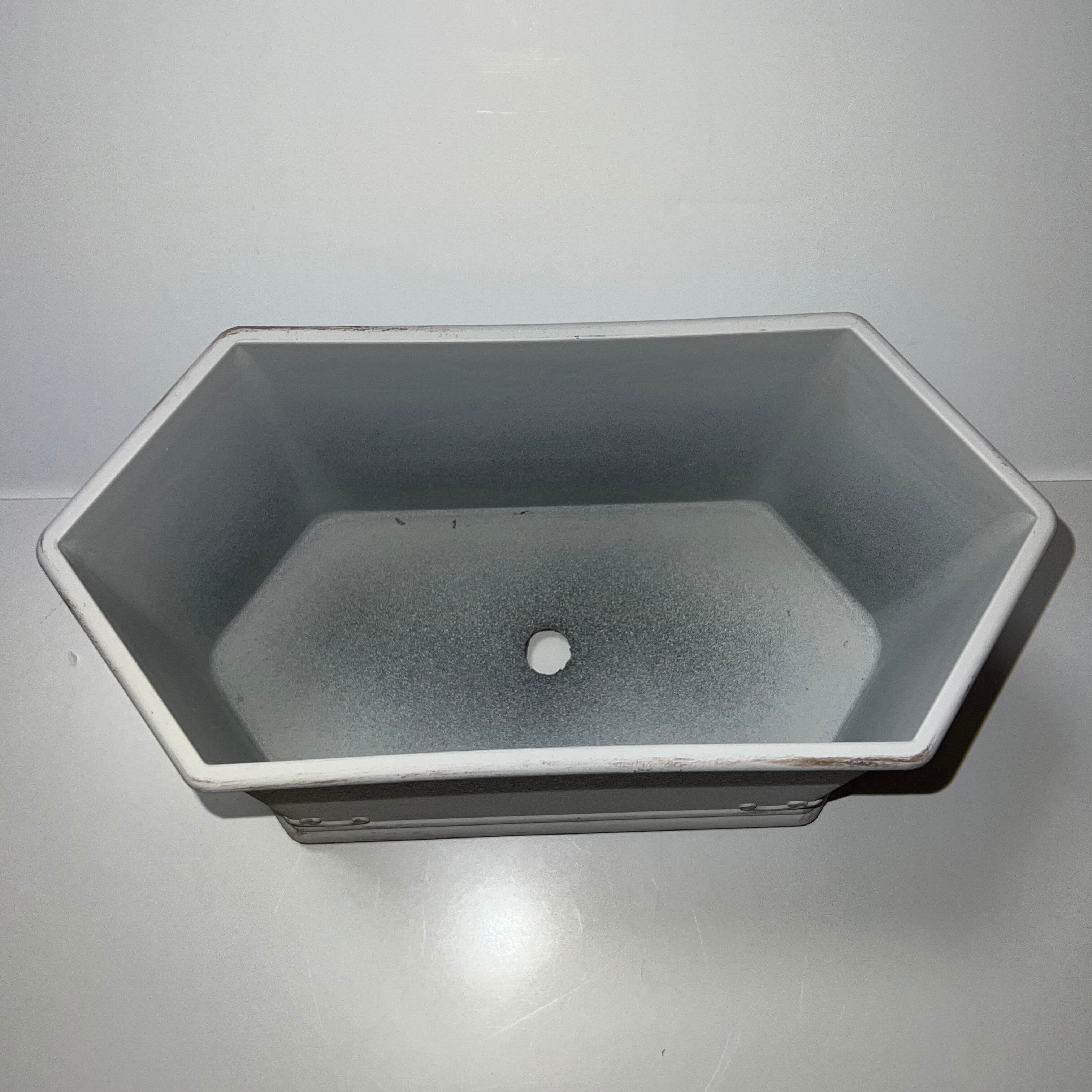 横長の六角形の形をした樹脂製のプランターです。